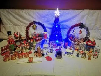 Decoratiuni sarbatori iarna Craciun globuri brad figurine casute cadou