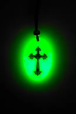 Colier Medalion Galben Fosforescent cu Cruce