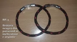 Brățară neagră din paracord și închizătoare Hook argintiu