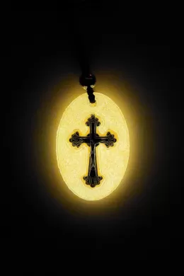 Colier Medalion Galben Fosforescent cu Cruce