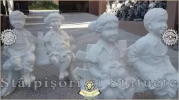 Set statuete copii cu coșulețe alb marmorat model J3J4