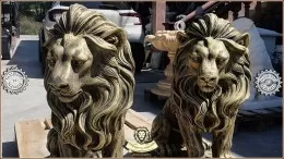 Statuetă leu în șezut auriu patinat model S46