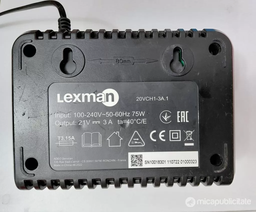 1. Incarcator Lexman 21 V -3A, model 20VCH1- 3A.1 - 50 lei.
