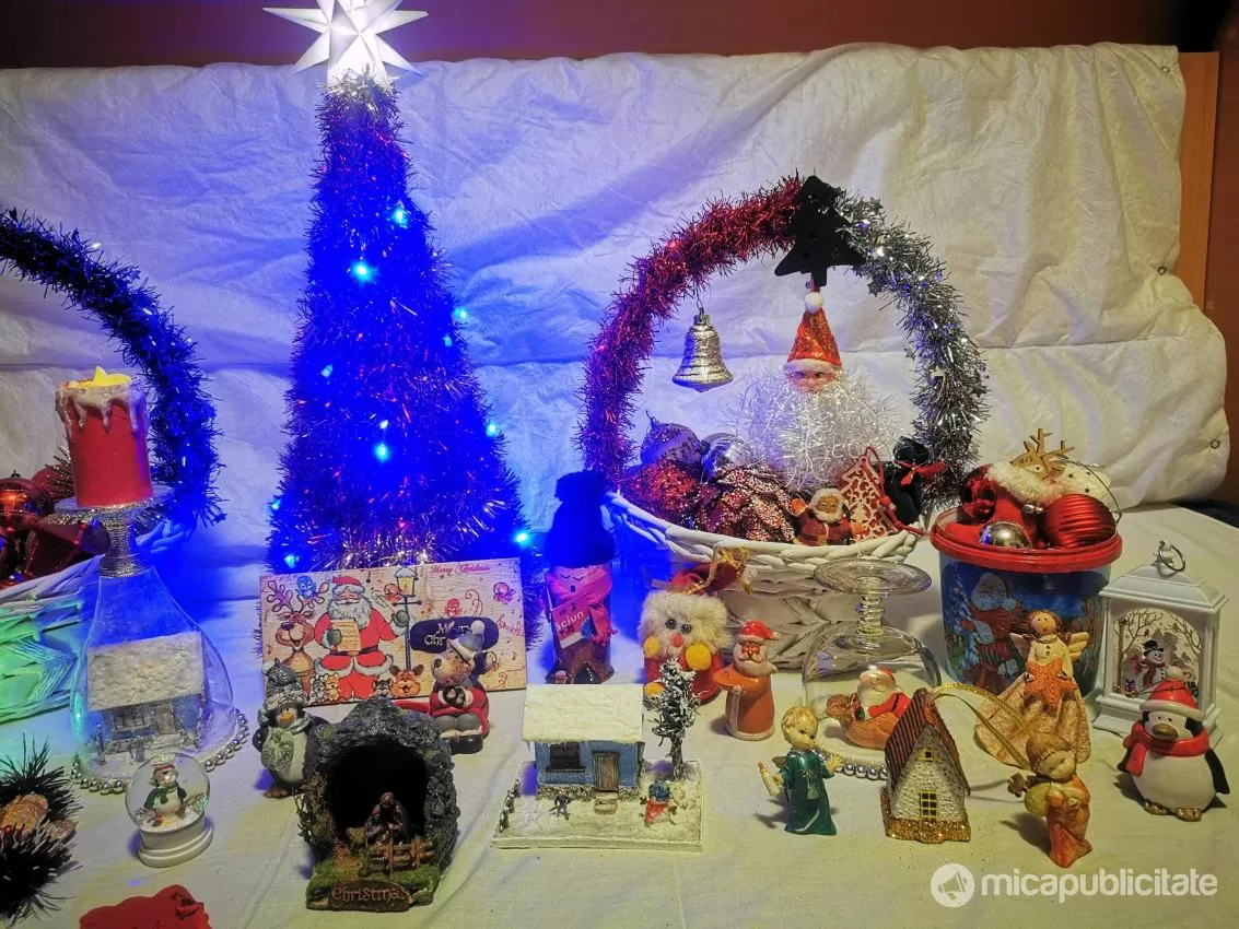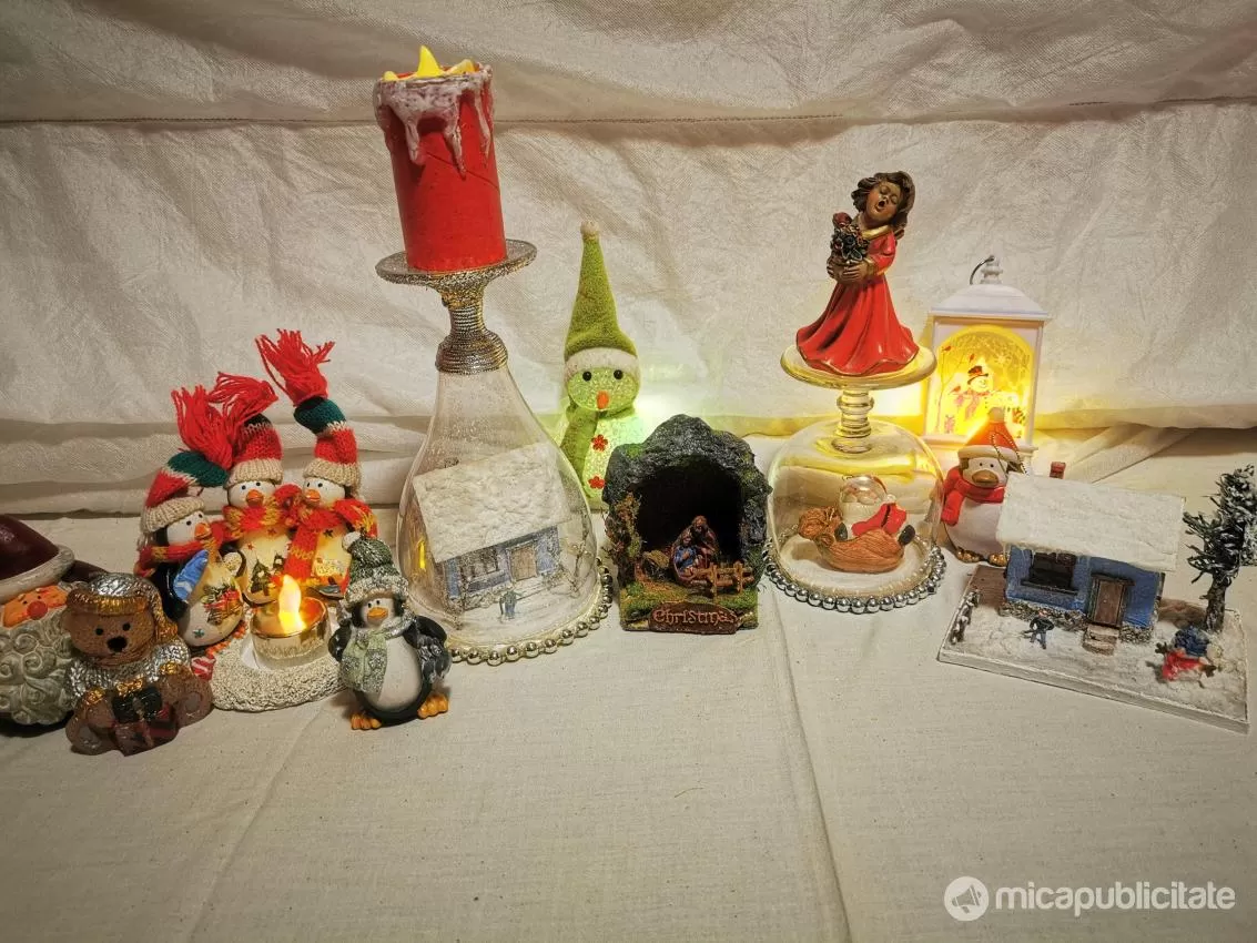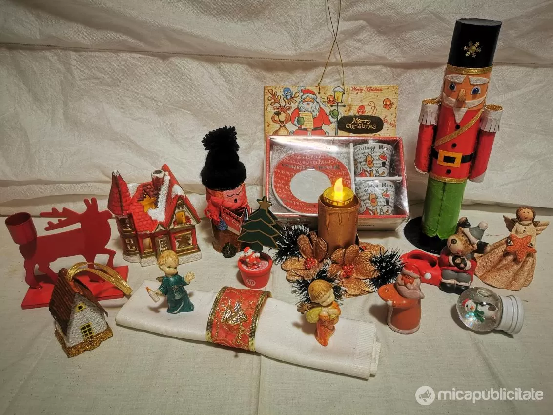 Decoratiuni sarbatori iarna Craciun globuri brad figurine casute cadou