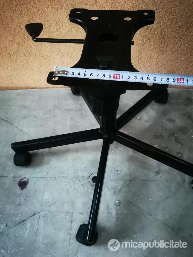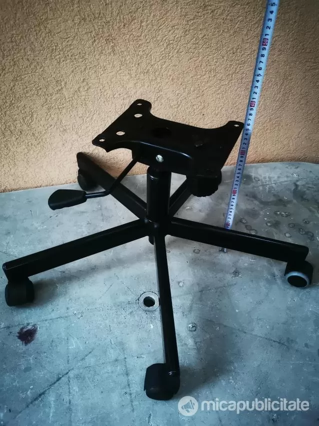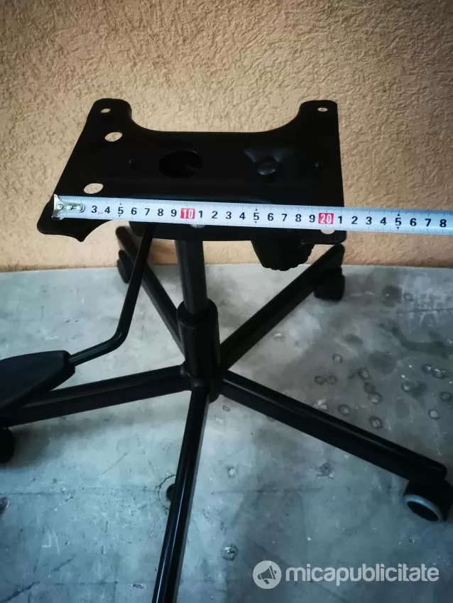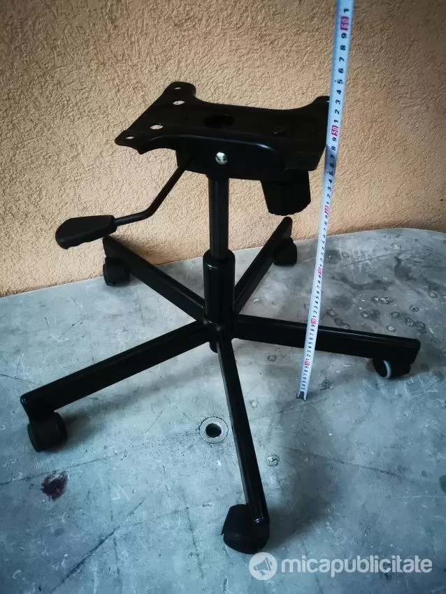 La pretul de 80lei ansamblul picior scaun cu sistem de balans, stea de 68cm diametru din metal, înălțime reglabilă între 35,5cm și 48,5cm (evident, înălțimea mai crește în funcție de grosimea șezutului de scaun folosit).