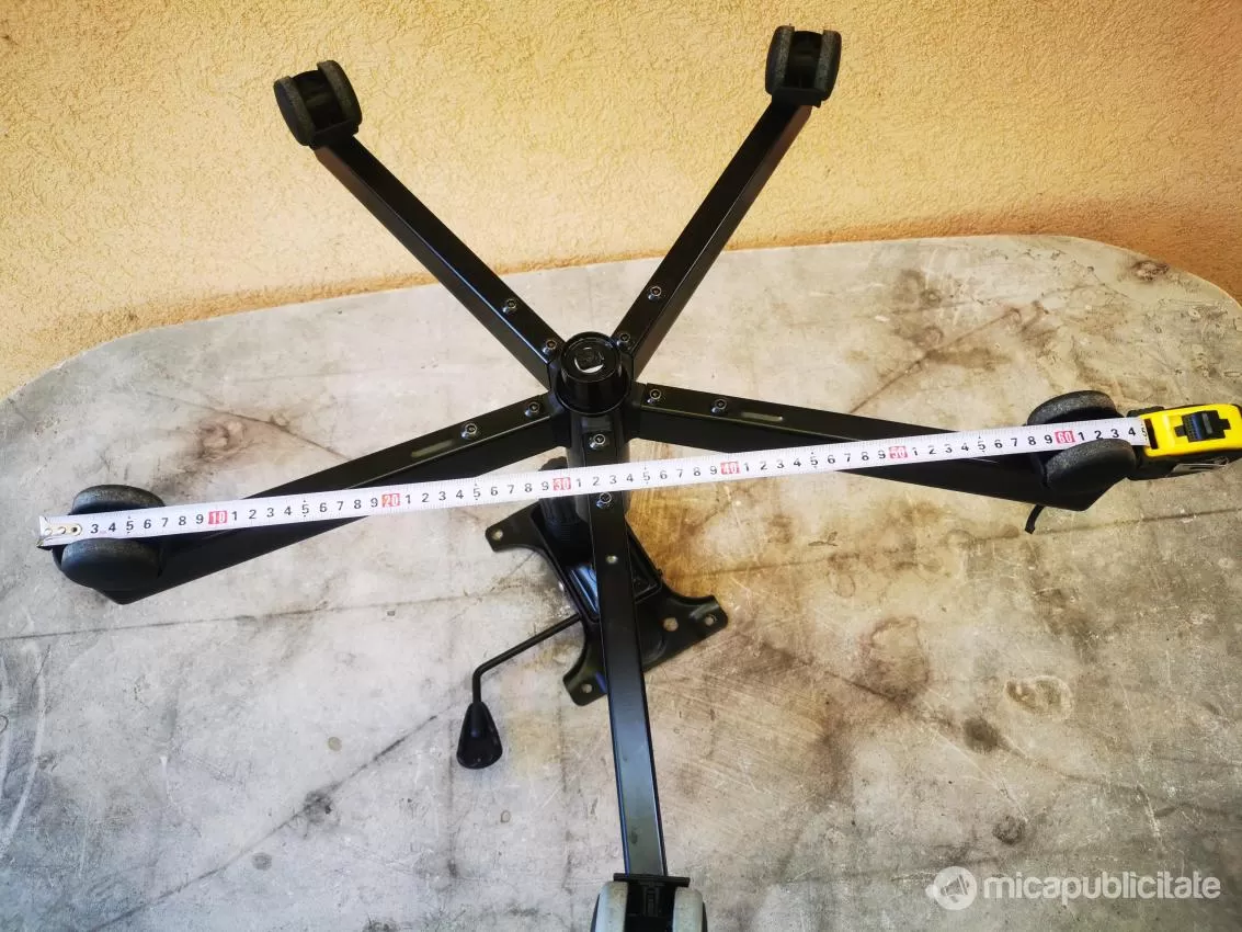 -La prețul de 70lei ansamblu picior scaun cu sistem de balans, distanță între centrul găurilor suportului 15cm x 25,5cm. Cu stea din abs gros de 67cm diam. înălțime reglabilă între 36,5cm și 47,5cm.
