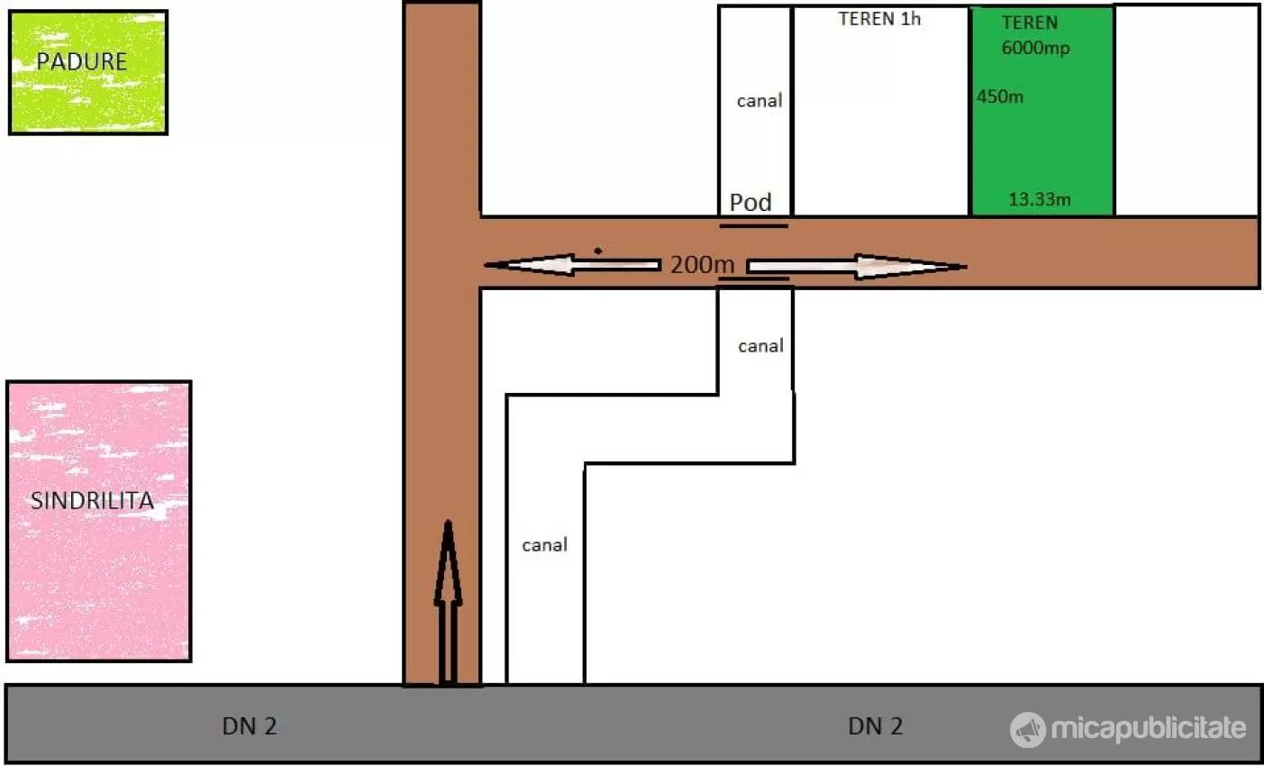 Terenul are o suprafață totală de 6000 mp și o deschidere de 13,3 metri.