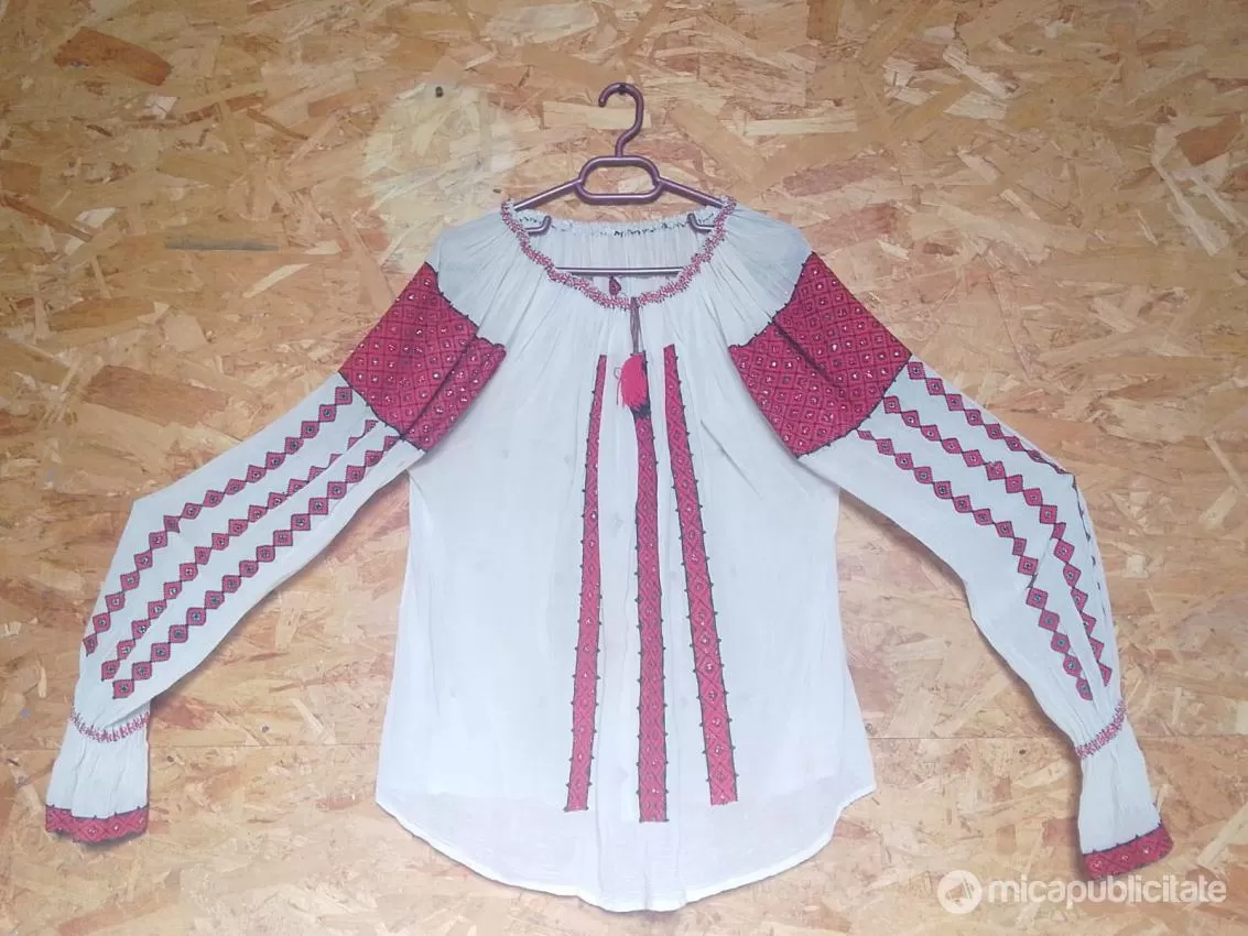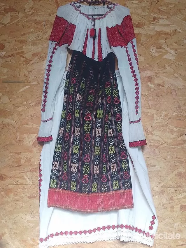 Vând costum popular tradițional din zona Munteniei, compus din 6 piese: ie, poală, 2 fote, vestă și brâu.