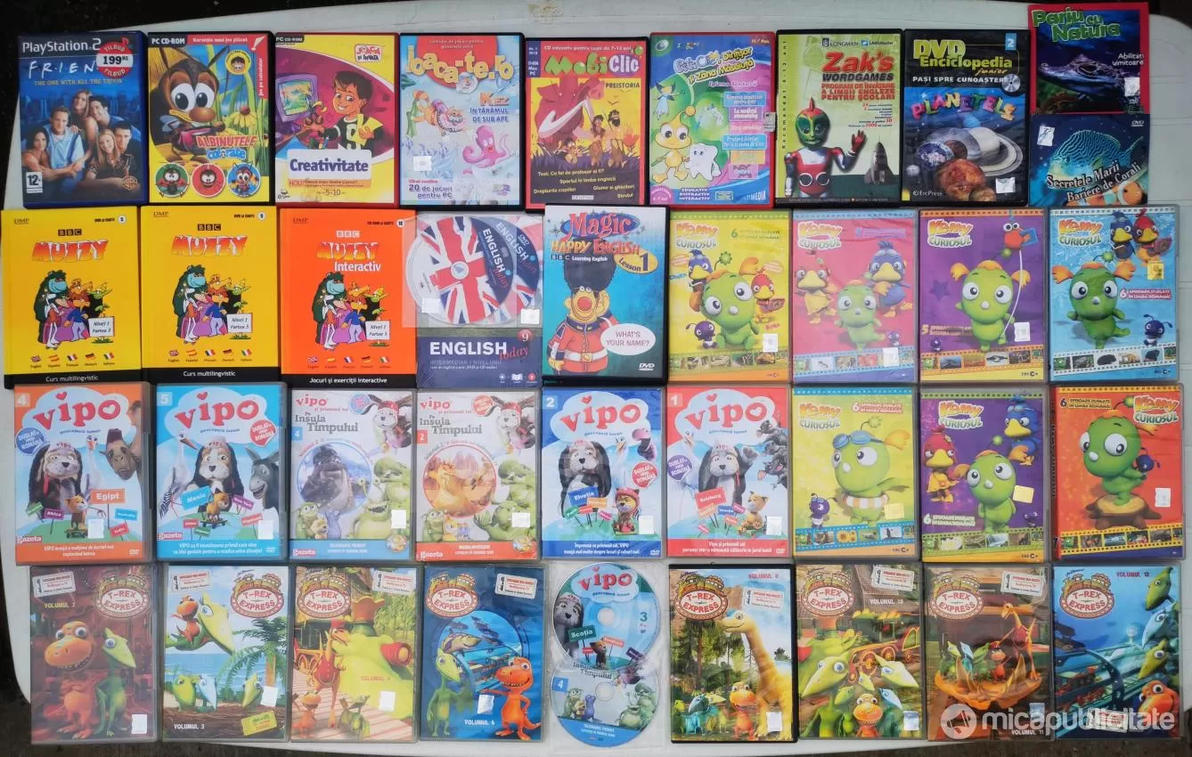 Vand DVD-uri marea majoritate cu filme de desene animate dublate in lb. romana sau cu subtitrare in lb. romana, dar se regasesc printre ele si programe educative, jocuri de pc sau laptop. Vedeti restul anunturilor mele, ca am mai multe decat cele prezentate in aceste imagini.